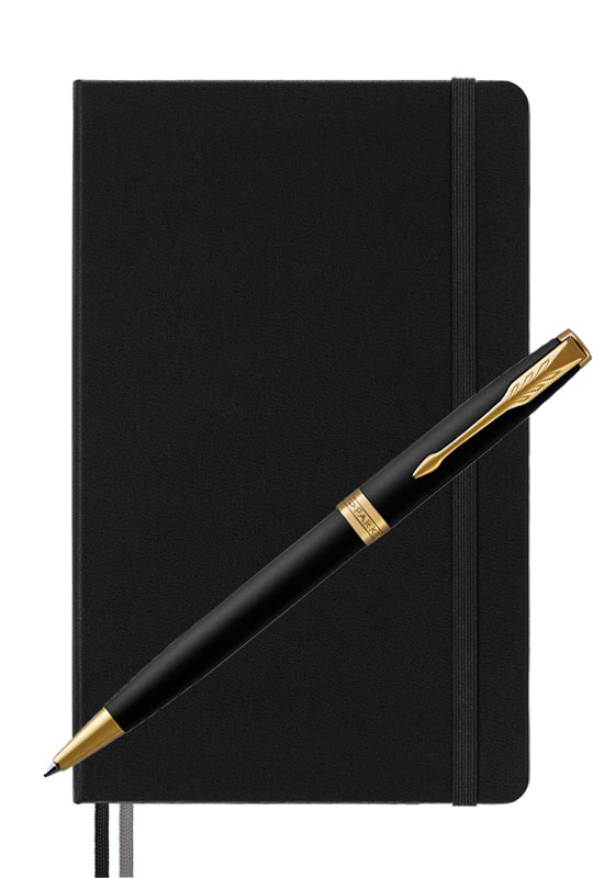 Parker Sonnet Matte Black Gt Moleskine от официального дилера Parker в Ессентуках. Вы можете дополнительно заказать гравировку, которая подчеркнет Вашу оригинальность и придаст памятность статусному подарку. Все ручки Паркер поставляются в фирменном футляре.
